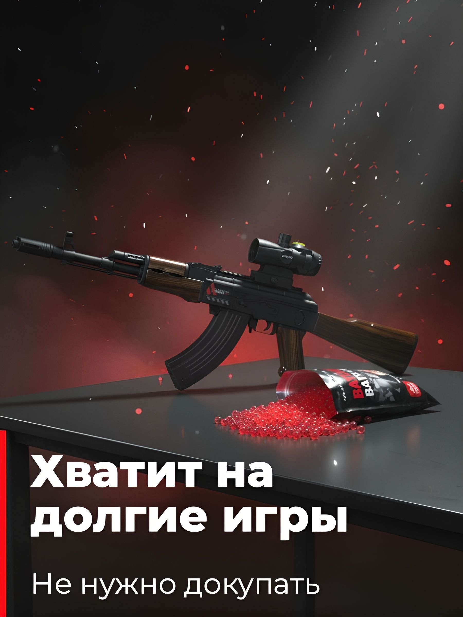 Погрузитесь в динамичные сражения с автоматом, который выглядит как настоящий, но абсолютно безопасен! Модель АК-47 стреляет мягкими гидрогелевыми шариками диаметром 6–8 мм: они безвредно лопаются при попадании и не оставляют следов на одежде или поверхностях. Отличный выбор для активного отдыха детей от 8 лет — развивает ловкость, реакцию и навыки командной игры.