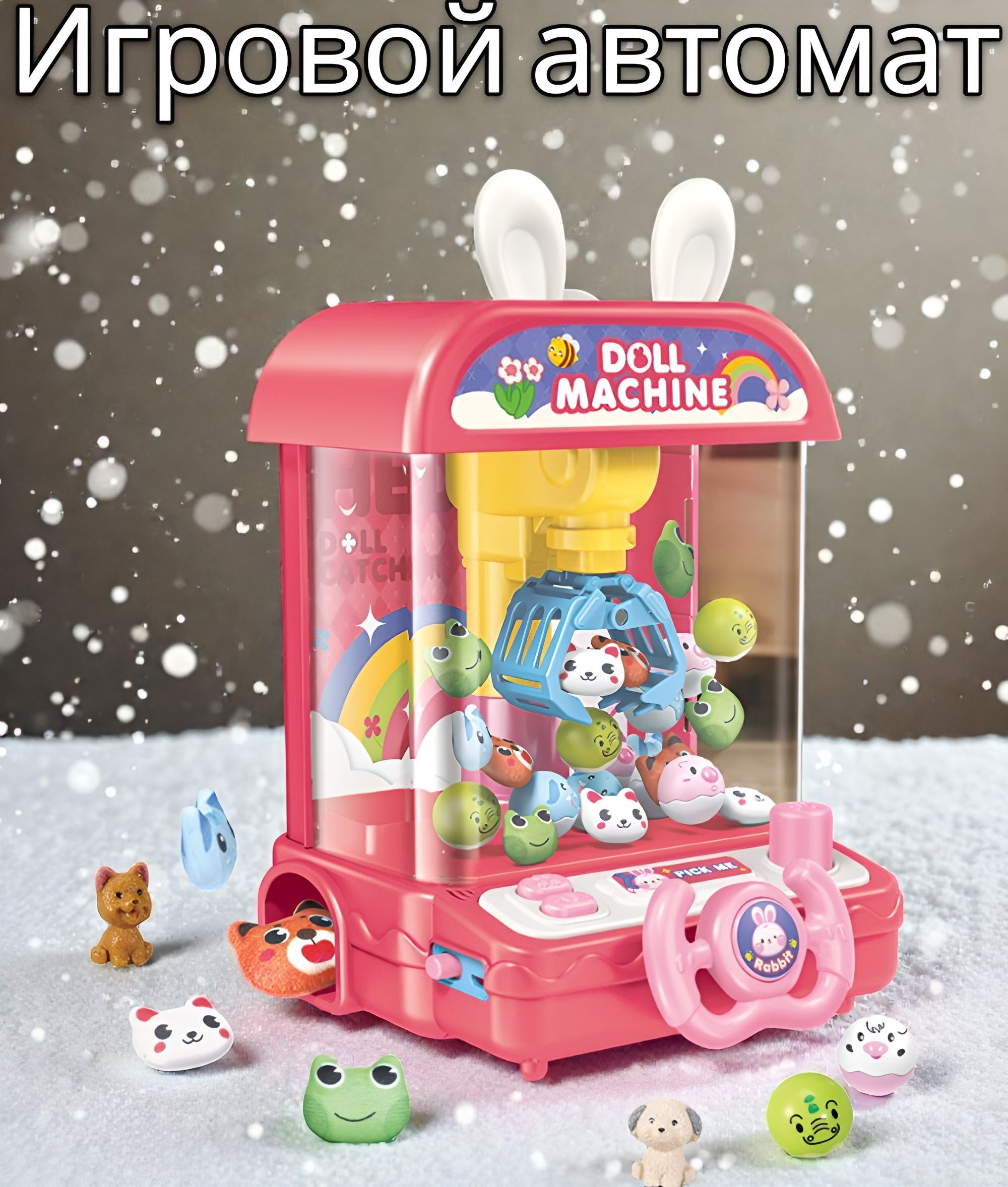 Автомат оснащён звуковыми и световыми эффектами, а также музыкальным сопровождением. Подвижные элементы и реалистичная механика крана делают процесс максимально захватывающим и интерактивным.