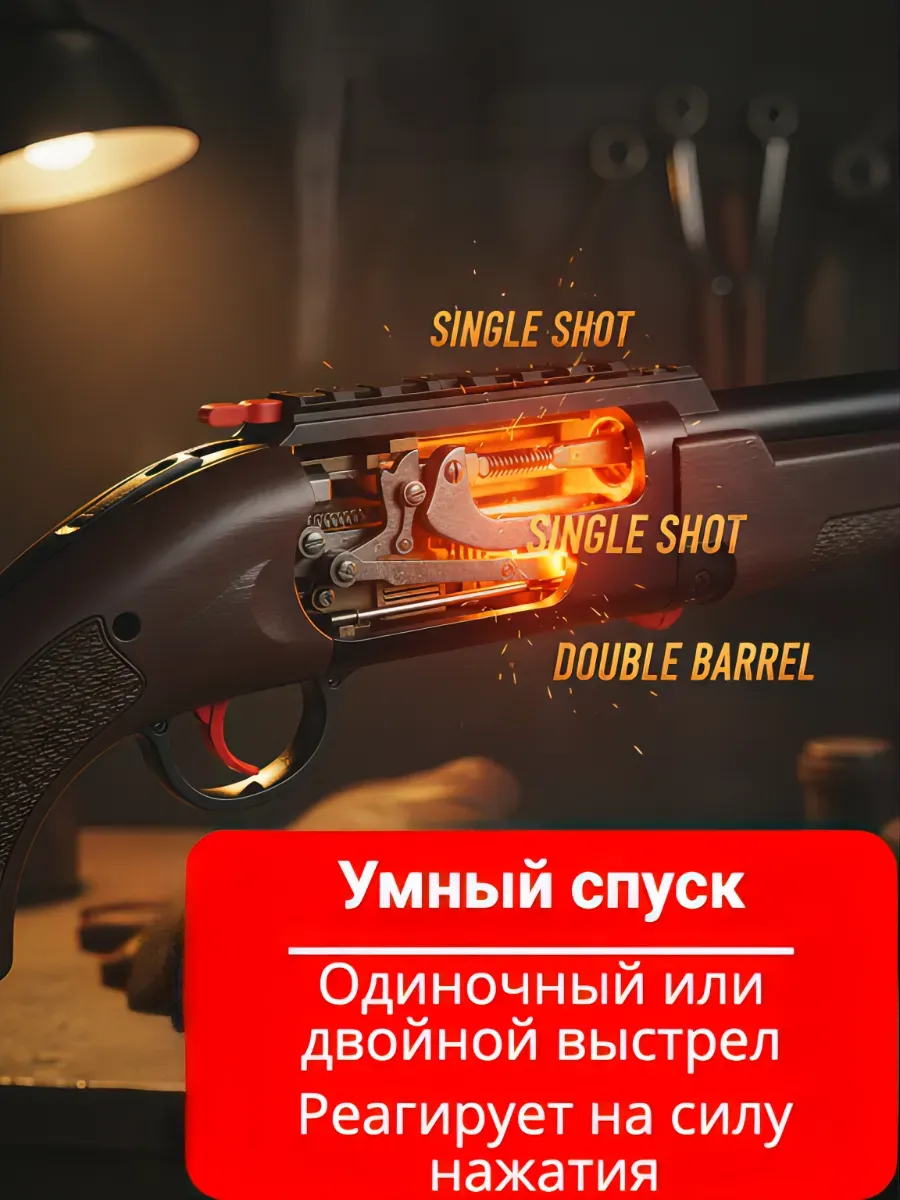 Адаптивная система спуска реагирует на силу нажатия: легкое нажатие дает одиночный выстрел для точной стрельбы, сильное — двойной залп для подавления цели. Механика развивает координацию, глазомер и тактическое мышление.