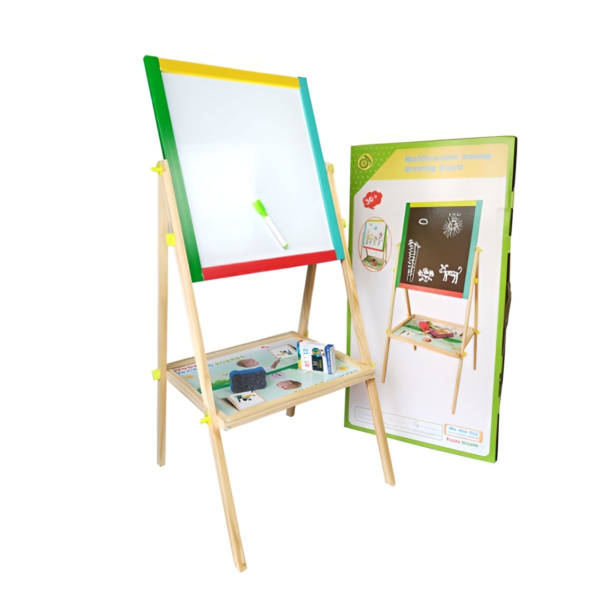 Превратите детскую комнату в настоящую творческую мастерскую! Этот двусторонний деревянный мольберт — идеальный подарок для развития фантазии, мелкой моторики и подготовки руки к письму. Он станет любимым местом для игр и обучения вашего малыша.