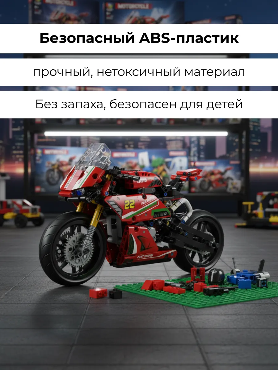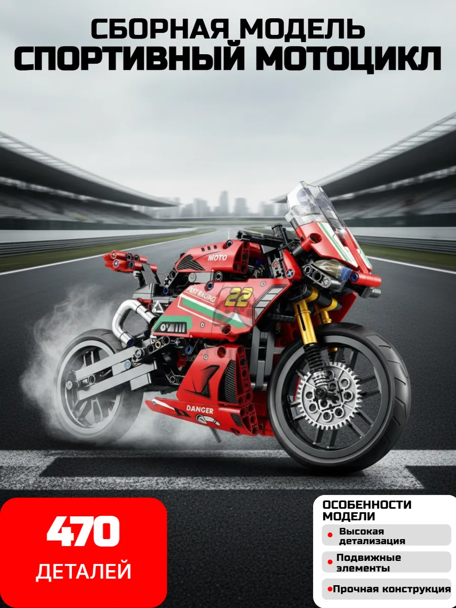 Погрузите ребёнка в увлекательный мир инженерии и скорости! Спортивный мотоцикл из 470 деталей — это не просто игрушка, а настоящий образовательный конструктор, который развивает технические навыки и творческое мышление.