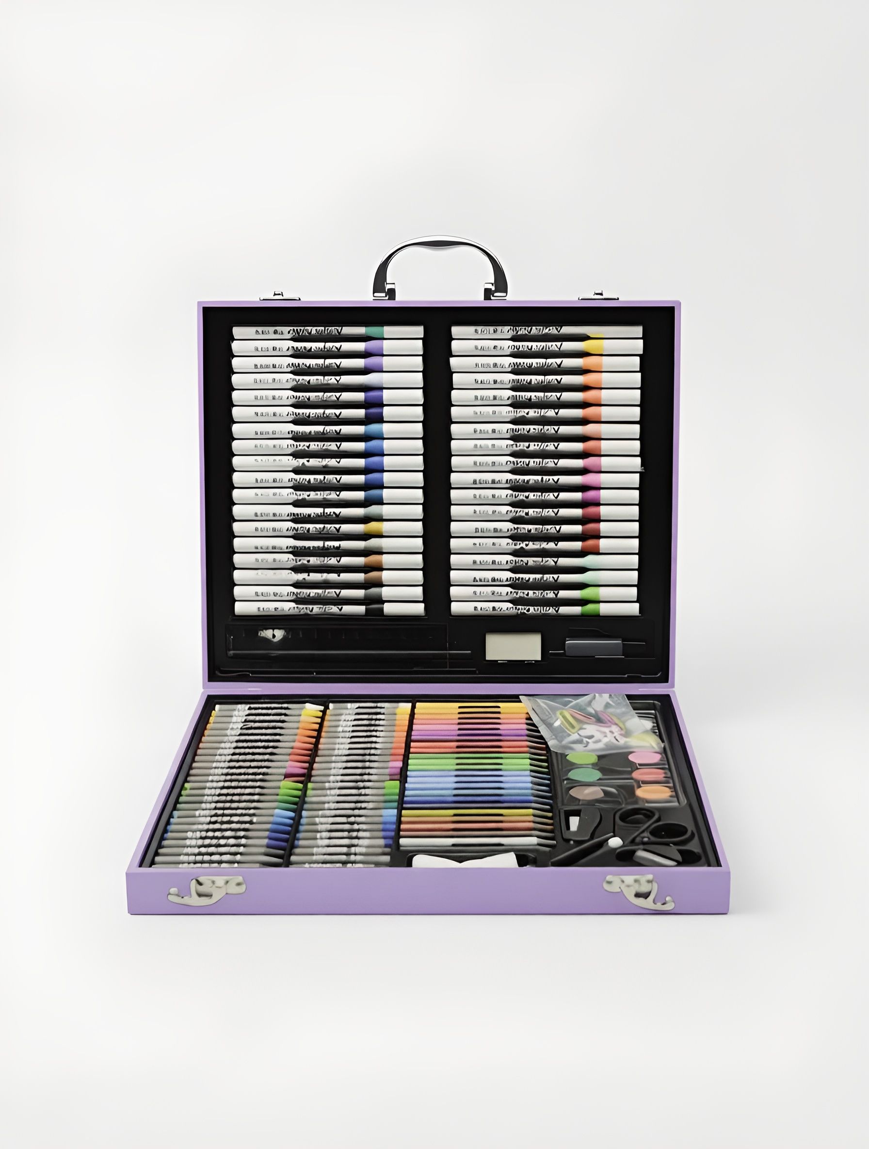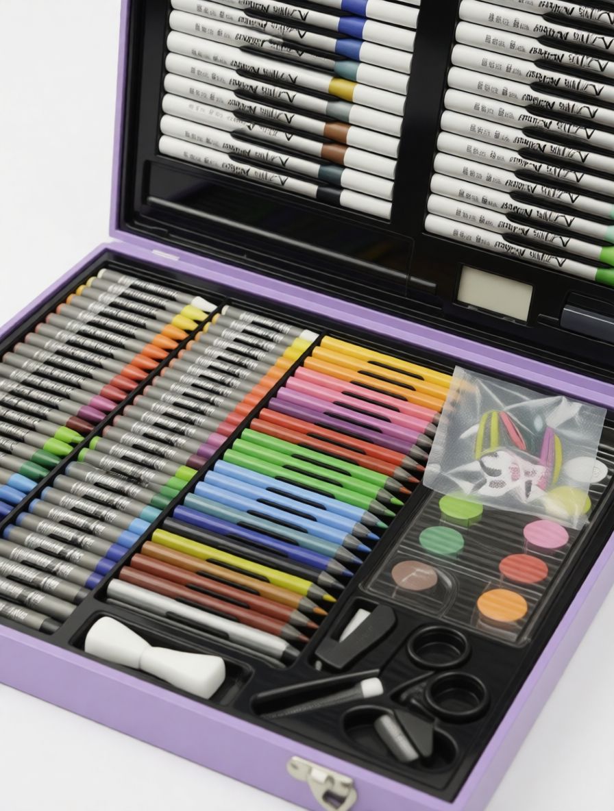 Подарите ребенку целую художественную студию, упакованную в стильный чемоданчик! Наш набор — это не просто 150 предметов для рисования, а билет в мир безграничной фантазии, где каждый день рождаются новые шедевры.