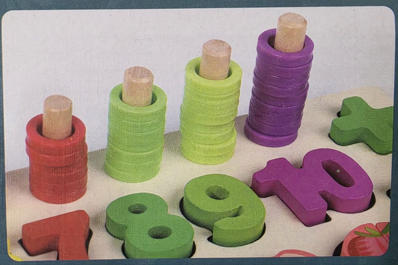 - Развивает сразу несколько навыков: Одна игрушка помогает освоить счет, выучить цвета и геометрические формы, а также развить логическое мышление. Малыш учится связывать цифру с количеством предметов.