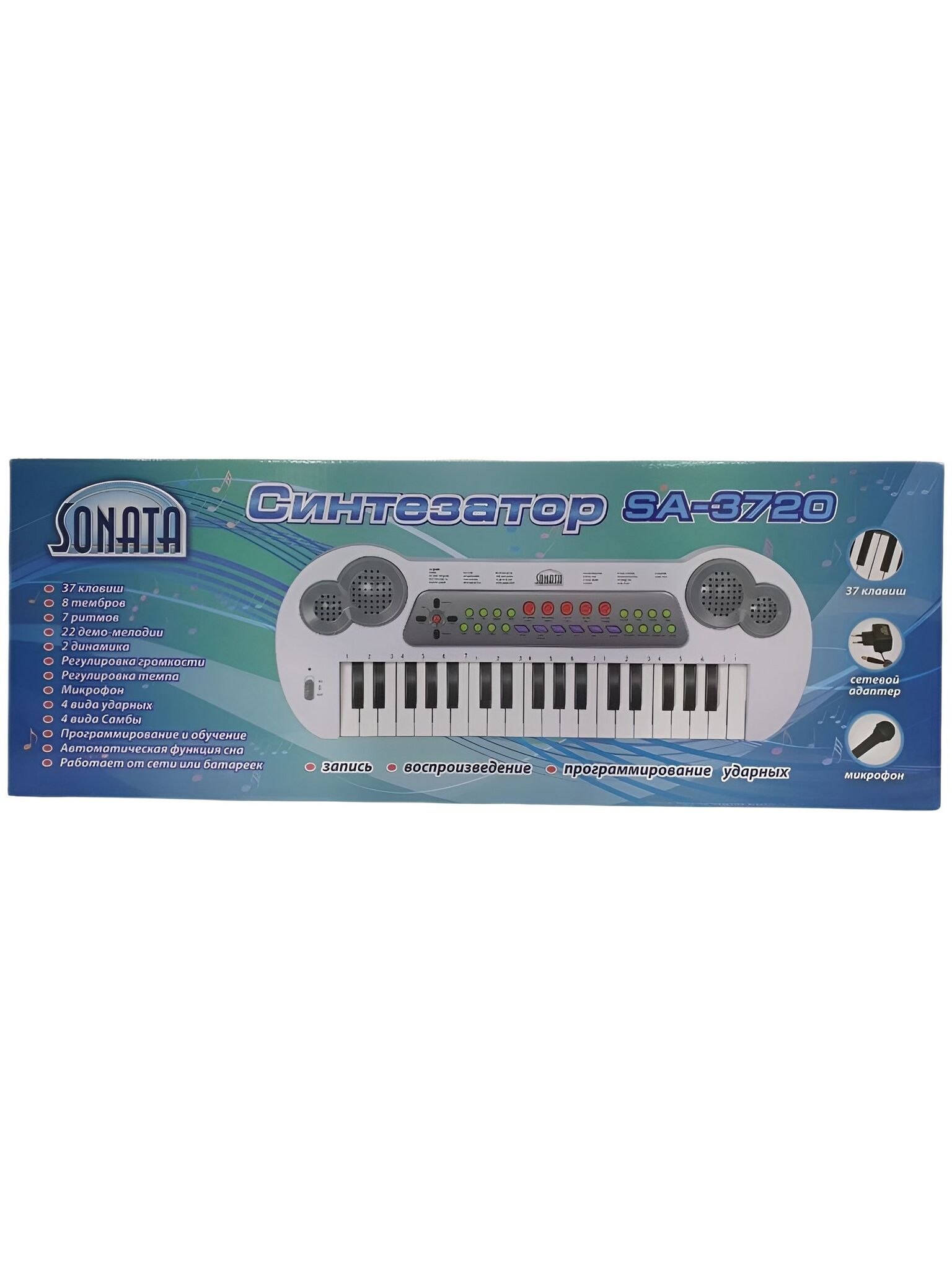 Синтезатор "SONATA" — это компактный и функциональный инструмент, предназначенный для начинающих музыкантов и любителей. Он оснащен 37 клавишами, что делает его удобным для обучения и первых шагов в мире музыки. Встроенные 8 тембров позволяют разнообразить звучание, а 7 ритмов помогут создать интересные аранжировки. 22 демо-мелодии дают возможность прослушать, как звучит инструмент, и вдохновиться на собственные композиции. Синтезатор оснащен микрофоном, что позволяет использовать его для вокала или записи звука. Русифицированная панель управления делает работу с инструментом простой и понятной, даже если вы только начинаете знакомиться с синтезаторами. 4 вида ударных инструментов расширяют возможности создания ритмических партий.